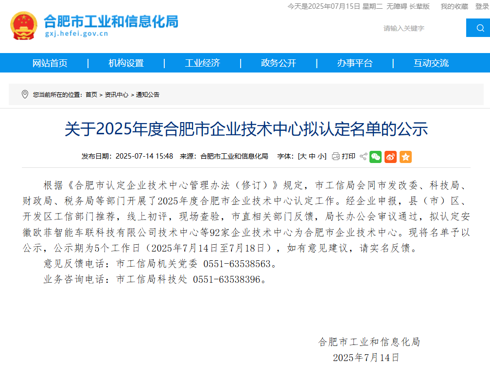 近日,依據(jù)《合肥市認定企業(yè)技術中心管理辦法(修訂)》相關規(guī)定,合肥市工業(yè)和信息化局聯(lián)合市發(fā)展和改革委員會、科學技術局、財政局、稅務局等部門組織開展了 2025